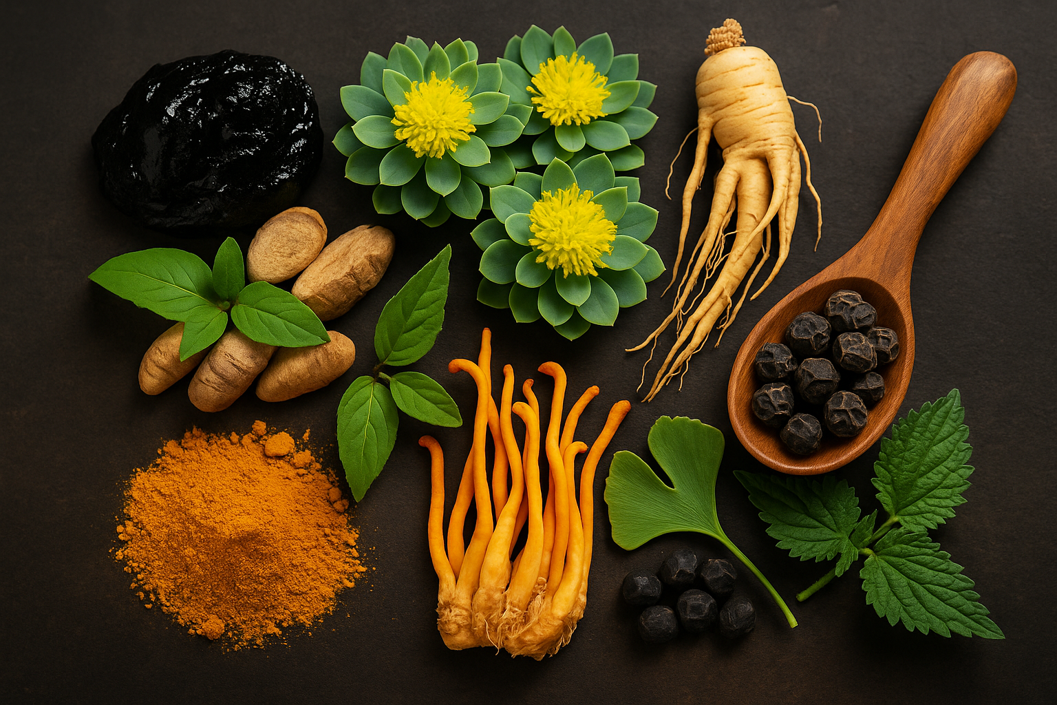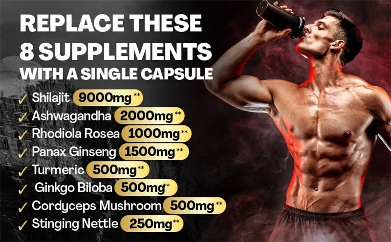It’s a premium adaptogen blend combining Himalayan Shilajit, Ashwagandha, Rhodiola, Ginseng, Turmeric, Cordyceps, Ginkgo, and Nettle. Designed to restore energy, sharpen focus, and balance stress in one clean daily capsule.